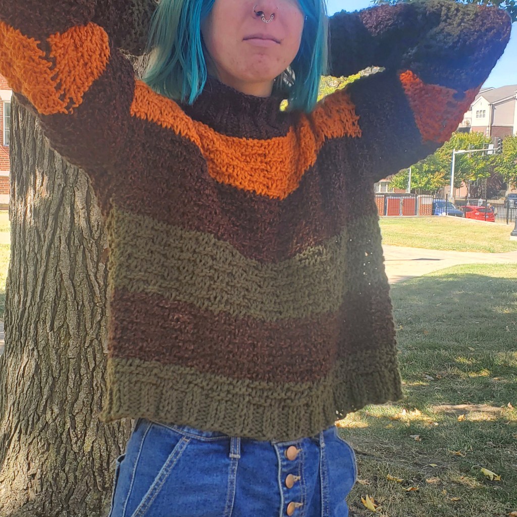 Knitted Freehand Sweater using custom stitch.