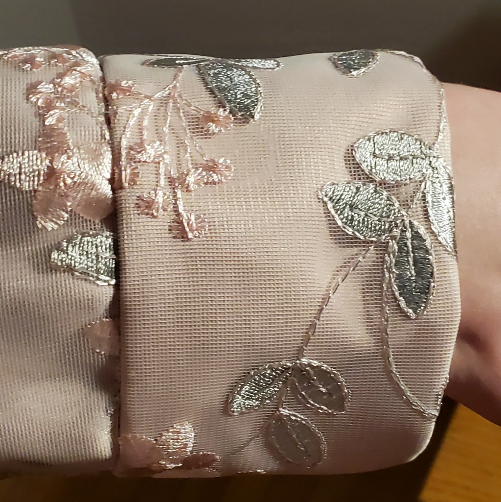 Fabric: 100% Polyester Matte Satin and Embroidered Lace