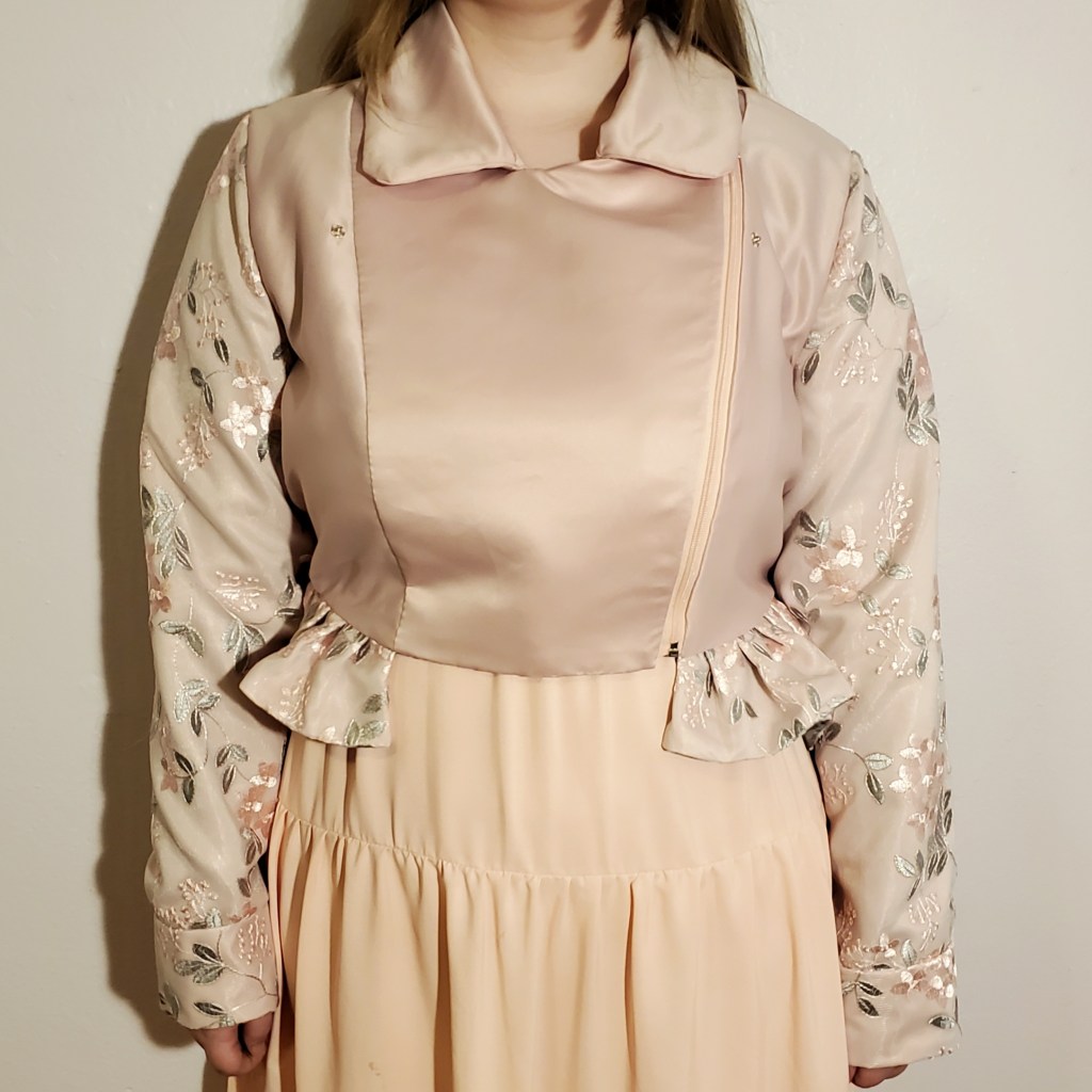 A motorcycle style jacket with a peplum